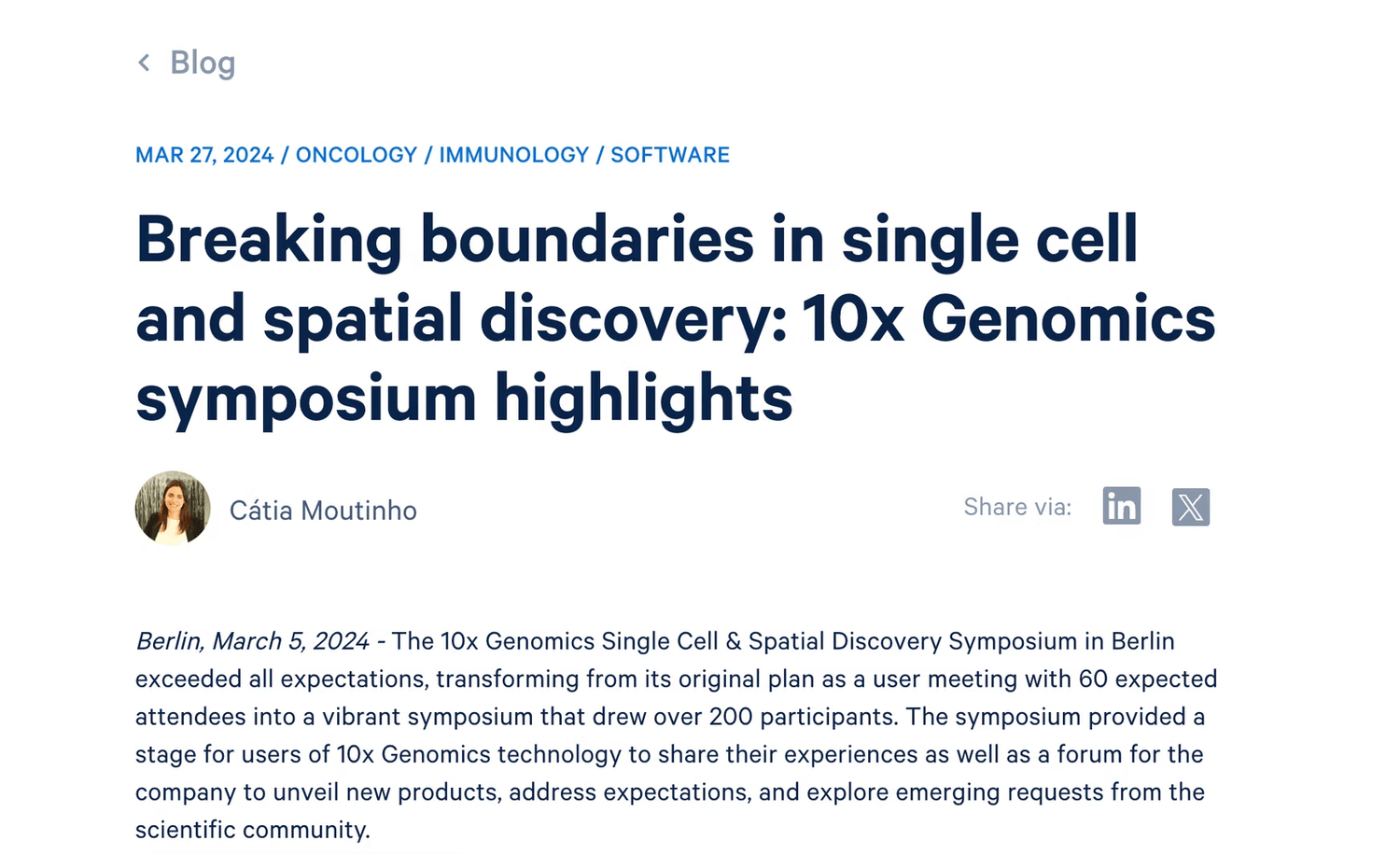 Goal: Write an article that was a snapshot of the 10x Genomics Berlin Symposium.